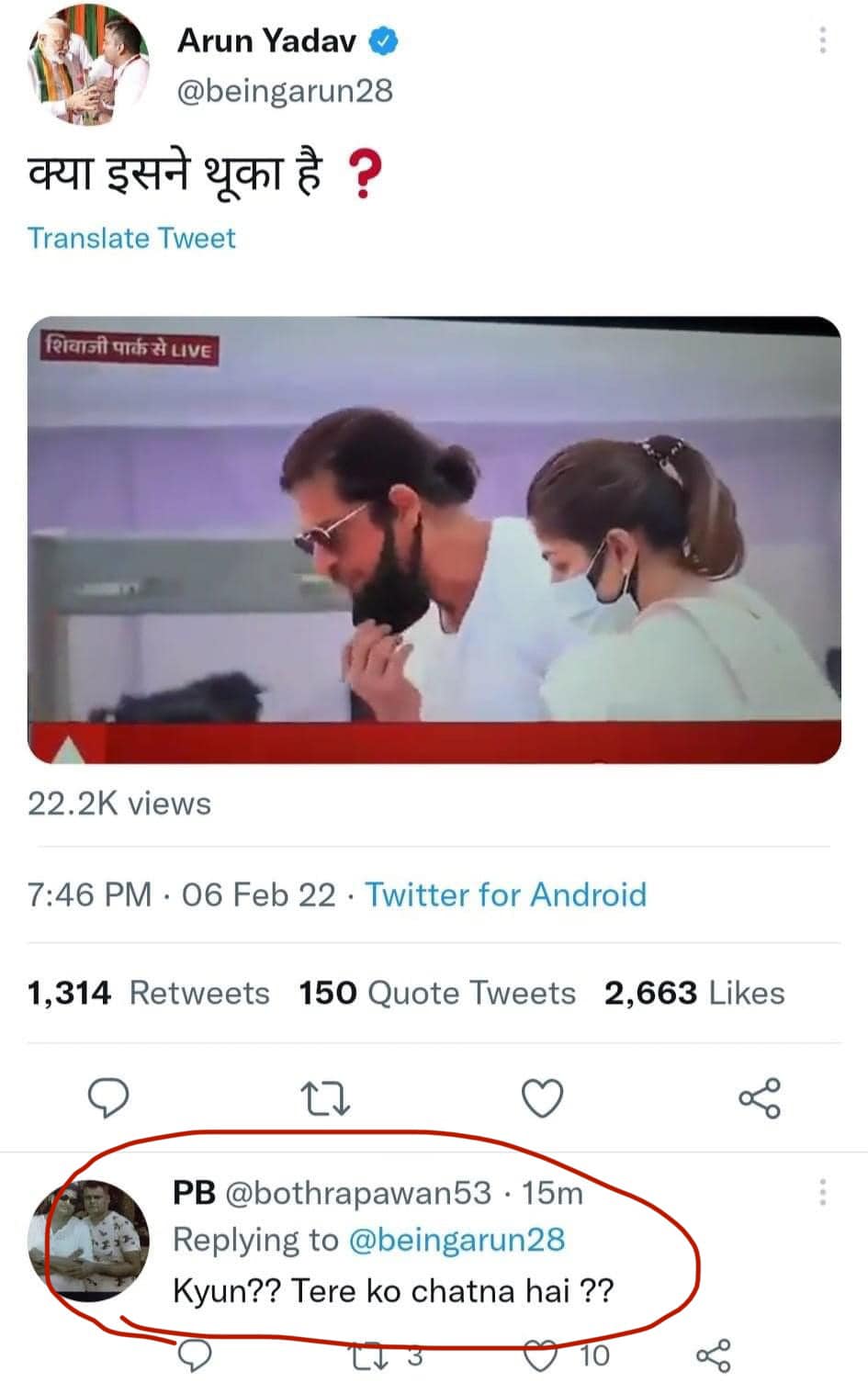 কিন্তু ঐ ফুটেজ নিয়ে বিতর্ক শুরু করেন হরিয়ানা রাজ্যের বিজেপির আইটি সেলের প্রধান অরুণ যাদব। লতা মঙ্গেশকারের মরদেহের সামনে দাঁড়িয়ে দুই হাত তুলে শাহরুখের দোয়া পড়ার পর ফুঁ দেওয়ার ভিডিও টুইট করে তিনি প্রশ্ন তোলেন – শাহরুখ কি মরদেহে থুতু ছুঁড়ছেন?