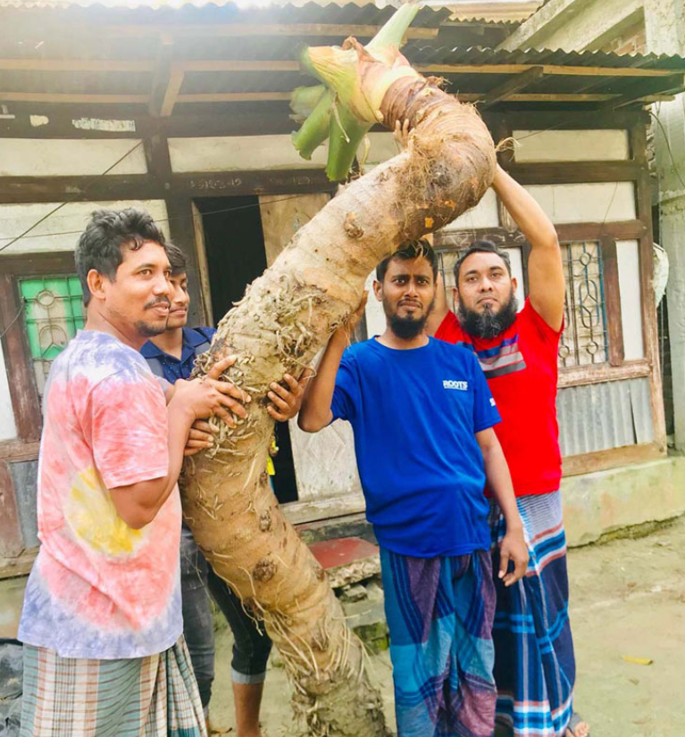 ১১ ফুটের মানকচুর ওজন ৩ মণ, বহন করতে লাগে চারজন